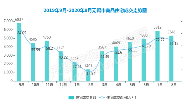 WXHOUSE报道: 8月商品住宅成绩单出炉! 成交面积66.12万方,成交套数5348套! 10