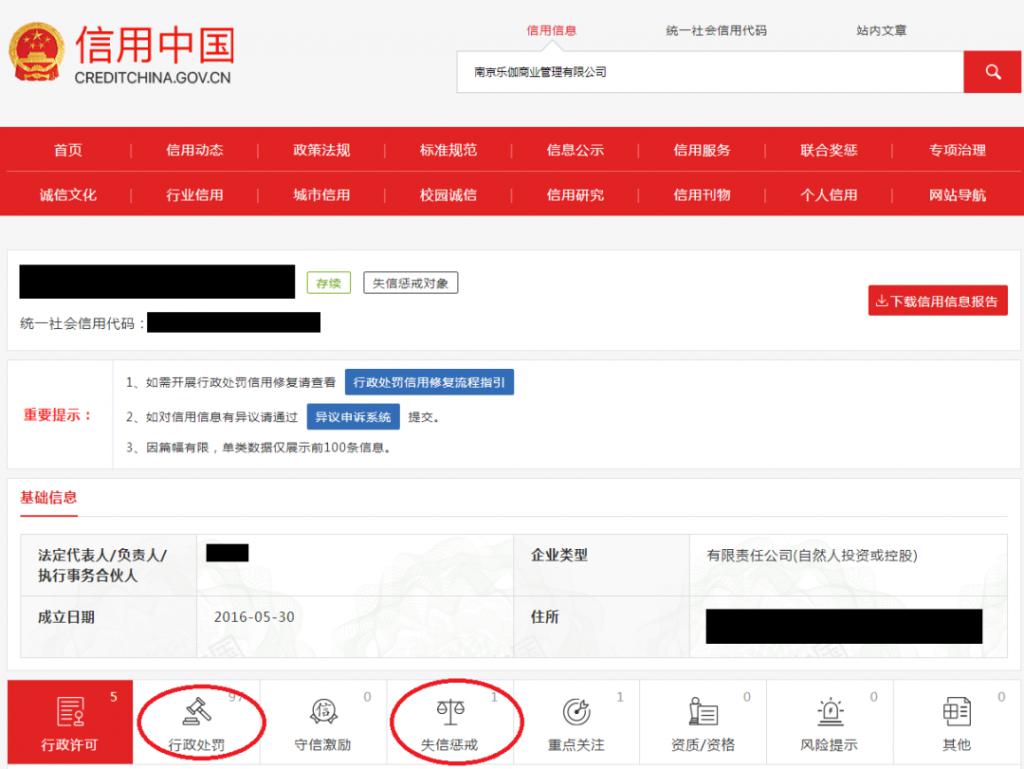 查询企业是否被列入经营异常名录,是否被列入严重违法失信企业名单(黑名单)或其他行政处罚。