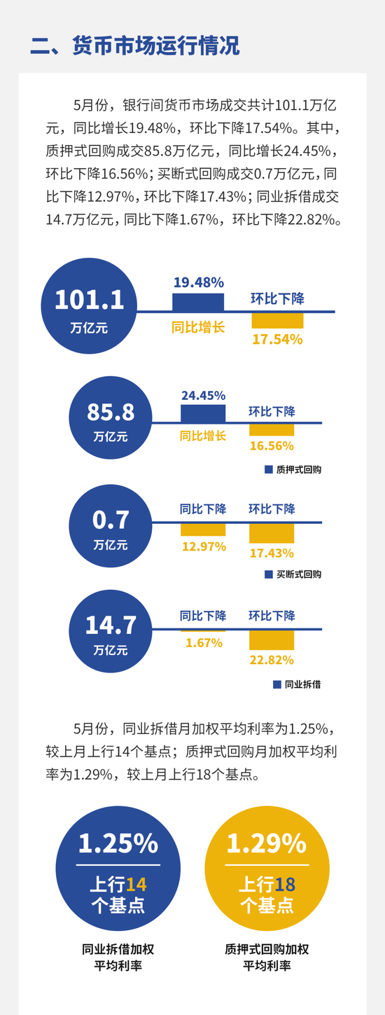 5月银行间货币市场成交共计101.1万亿元 同比增19.48%