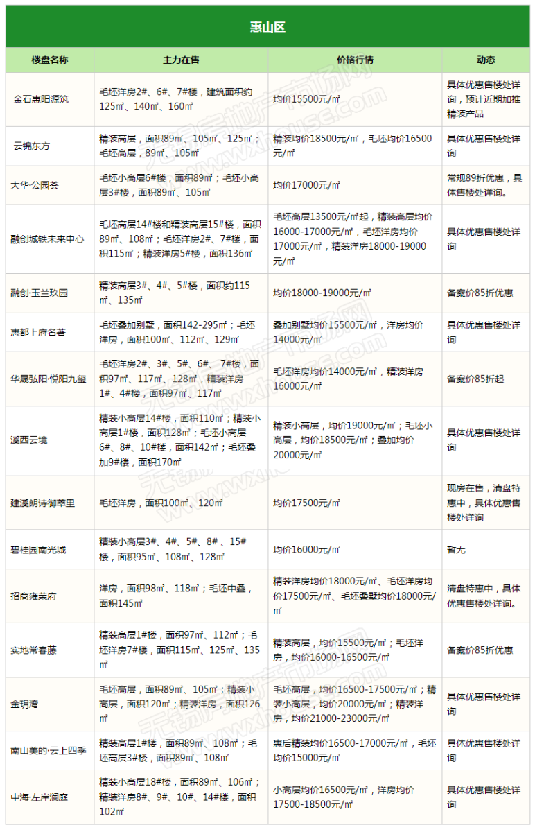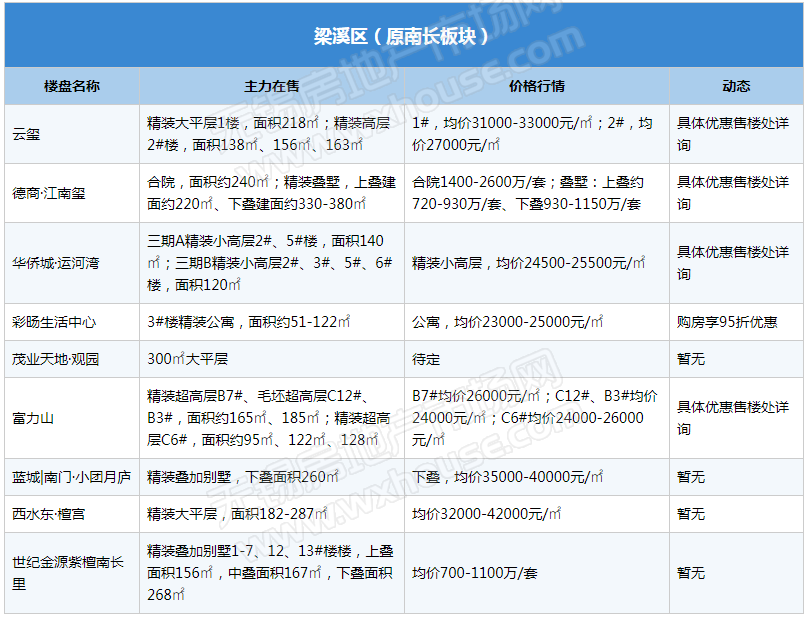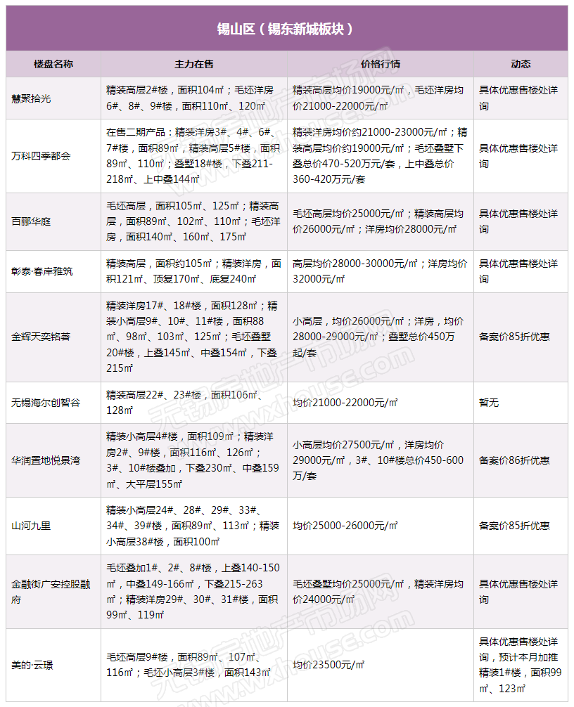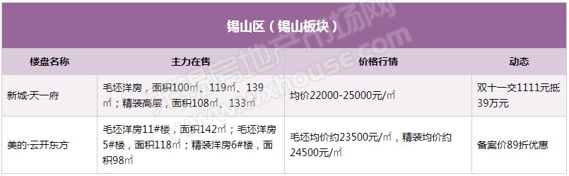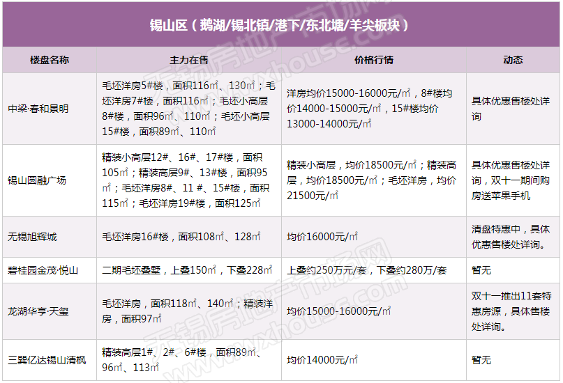 11月锡城主流在售楼盘最新报价及最全在售信息