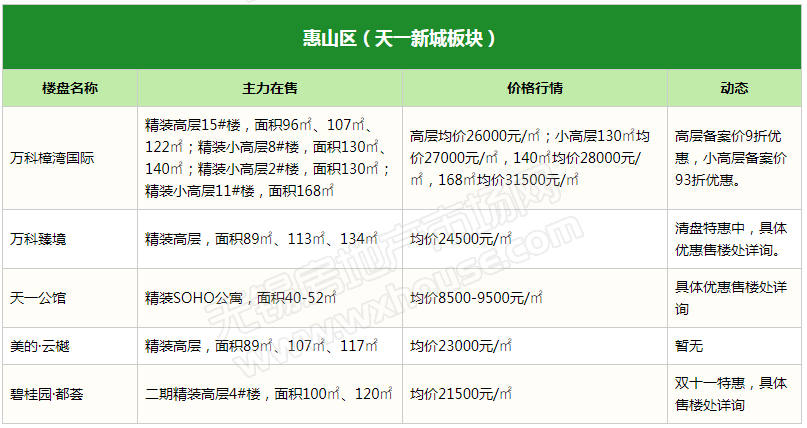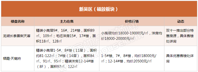 虽说楼市传统销售“黄金期”已过,但就目前来看加推、促销等楼盘营销活动并没有明显减少,反而已开始为年末冲刺预热,迎接11月。据小编致电了解,近期已有不少楼盘推出或计划推出“双十一钜惠”活动,如御璟天玺、璟萃、华发中央首府、悦印风华、金领蠡洲台、保利达·江湾城、新城·天一府等等,优惠主要以特惠房源为主。(注:下表整理内容为锡城主流楼盘、主流物业,均为售楼处报价)