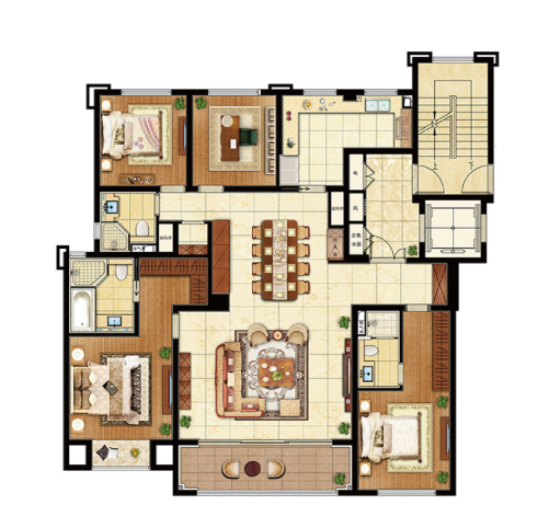 除此之外,整体规划有三个卫生间,除两个套房自带独立卫浴外,在北侧卧室旁亦规划了公卫,这般设计,既契合大家庭居住的需求,形成第三间“套房”,当有客人到访,也兼顾了客人的需求。