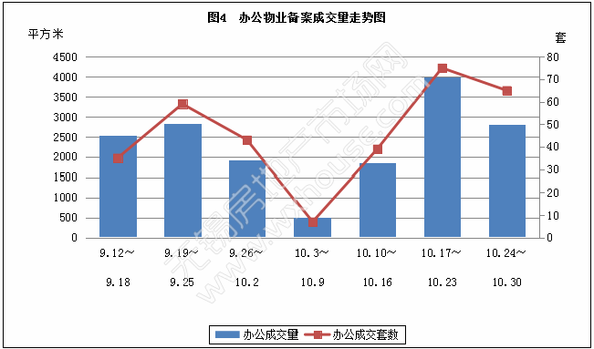 本周办公物业备案成交量和套数分析