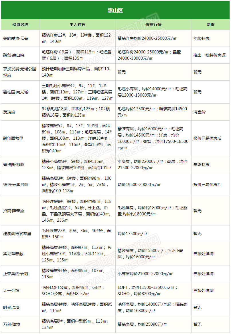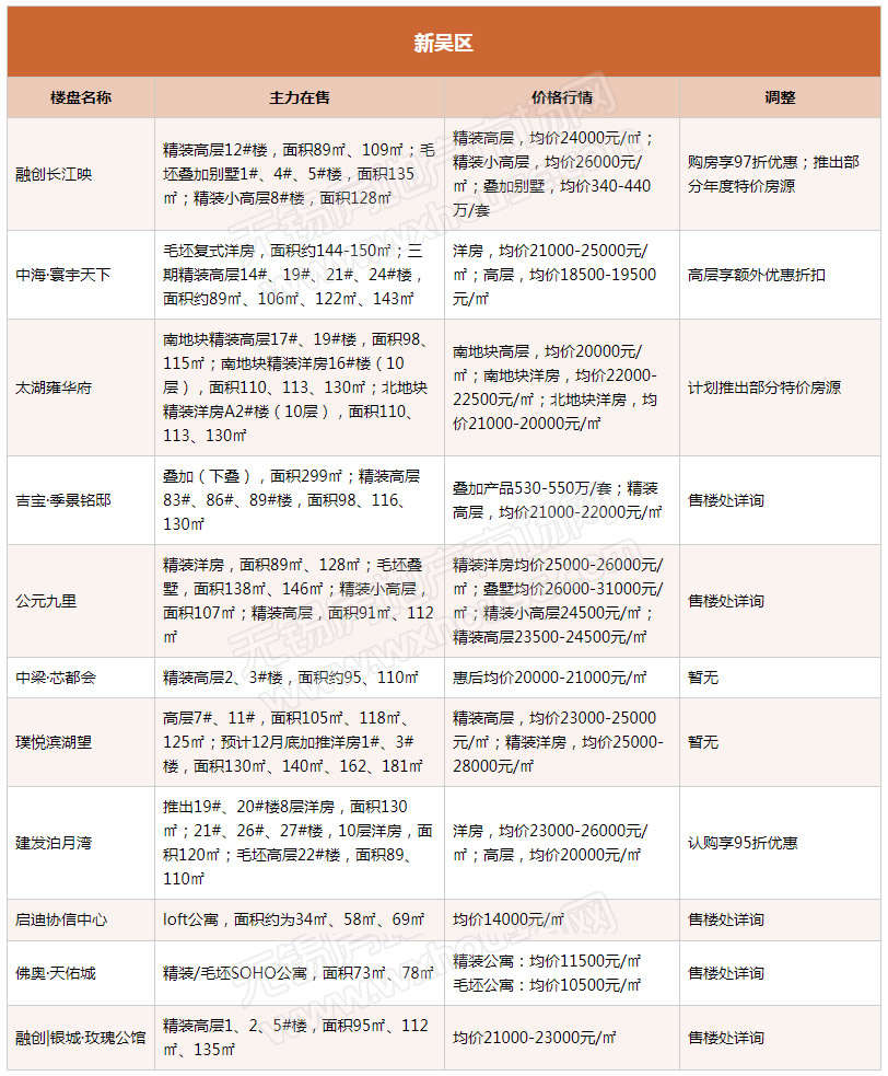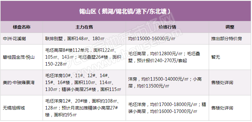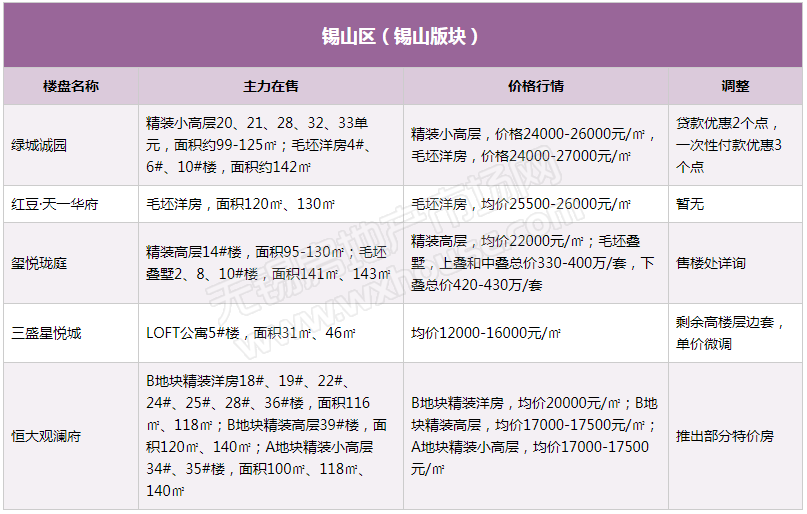 12月锡城主流在售楼盘最新报价及最全在售信息