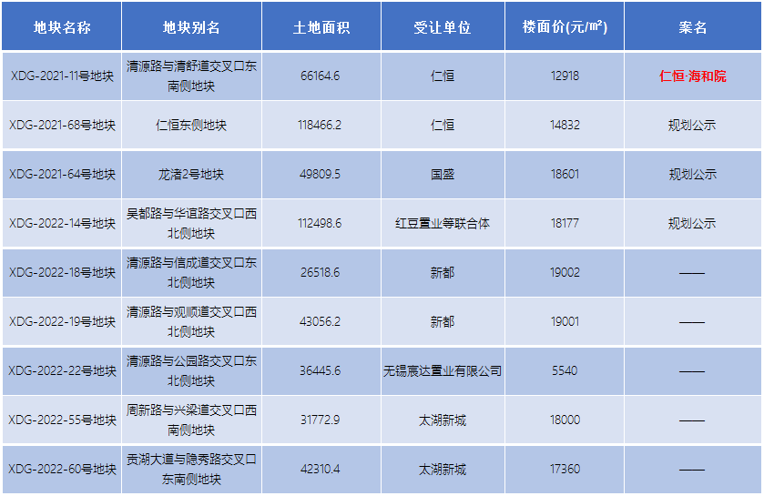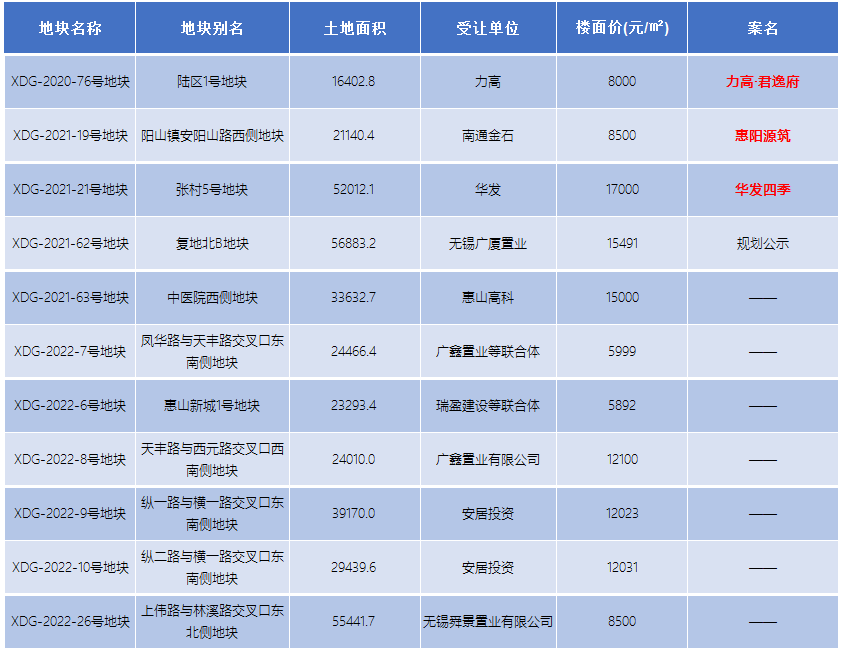 除阳山2项目力高君逸府、惠阳源筑,惠山经开项目华发四季未售外,尚余8个地块待转化,其中复地北B地块规划已公示。这些未入市的项目/地块计容建面总体量超过80万方。