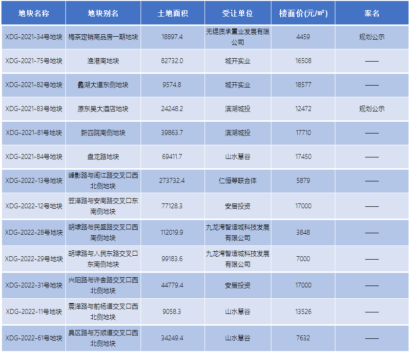 滨湖区新增地块相对也多。滨湖区现有待入市地块13宗,总计容建面约14万平米,但其中商办占比不少。地块分布在滨湖多个板块,目前梅茶定销商品房一期地块、原东吴大酒店地块规划已经公示。未来滨湖区将全面“上新”。