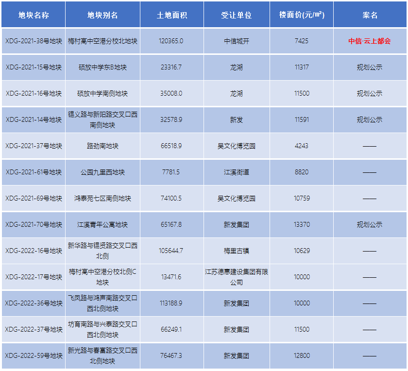 目前,梁溪区内已有3新盘案名公布,分别为金融街广安控股融御、星合·中山玖里、熙云里,3盘入市计划也已提上日程。除上述3个项目外,梁溪区还有10宗地块未转化为项目,13宗地块计容面积超80万平米,其中仅二泉地块面计容近15万方,这也是2020年以来山北盛岸片区推出的面积最大的一宗宅地。