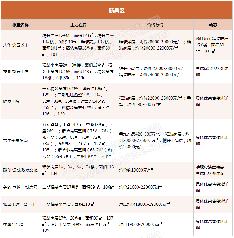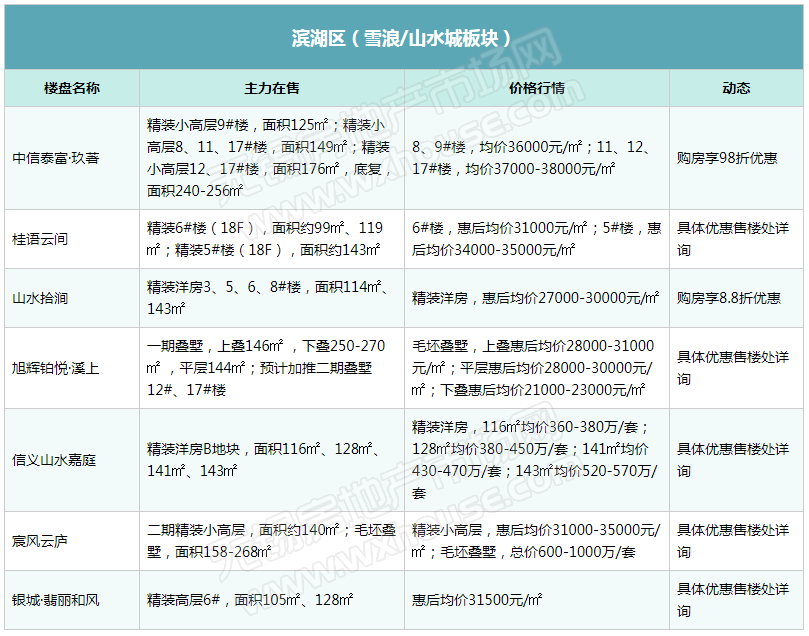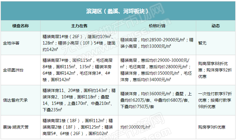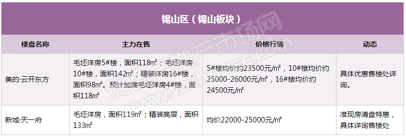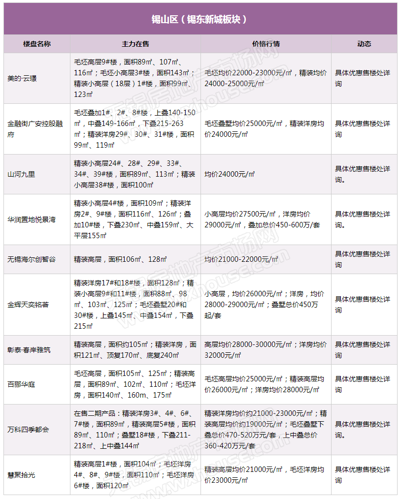 市场网首页 > 新闻中心 > 独家 > 正文 2月锡城主流在售楼盘最新报价及最全在售信息 2023-02-09 10:15:19 无锡房地产市场网 新春双节已过,但楼市似乎还未从假期状态走出,从一线市场来看,楼市成交情况状态一般,加推、促销等动态较少,目前仅极少数楼盘给出特价房购房优惠,大多已收回新春折扣,关注楼市的置业者不妨再等等看。(注:下表整理内容为锡城主流楼盘、主流物业,均为售楼处报价) 本文为无锡房地产市场网原创,谢绝各类形式的转载、刊登。未经许可,私自转载者,本站将追究其相关法律责任。 (责任编辑:陈柯)