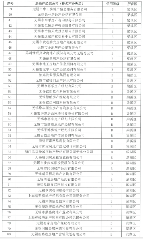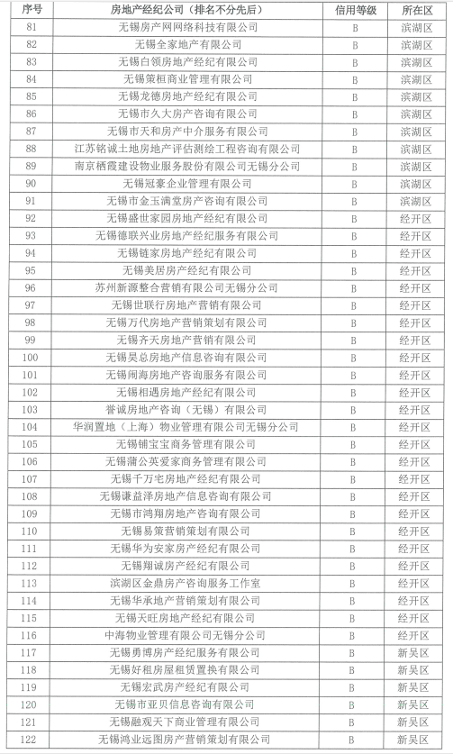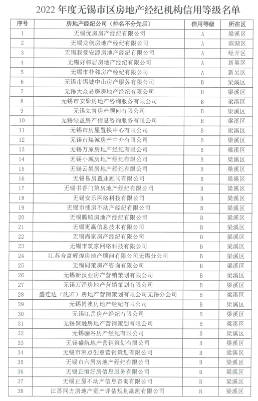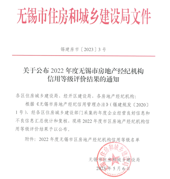 近日,《2022年度无锡市房地产经纪机构信用等级评价结果》发布。