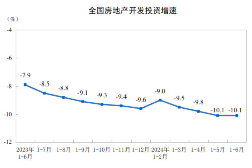 1—6月份,全国房地产开发投资52529亿元,同比下降10.1%(按可比口径计算,详见附注6);其中,住宅投资39883亿元,下降10.4%。