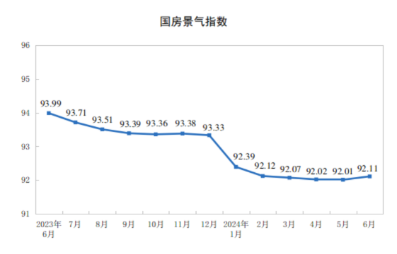 6月份,房地产开发景气指数(简称“国房景气指数”)为92.11。