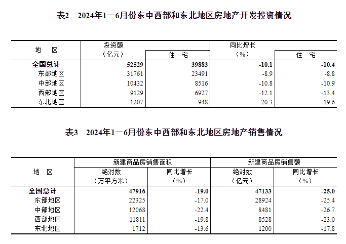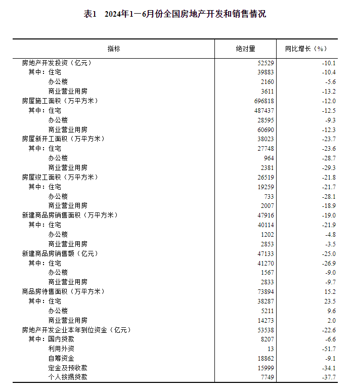 国家统计局:2024年1—6月份全国房地产市场基本情况