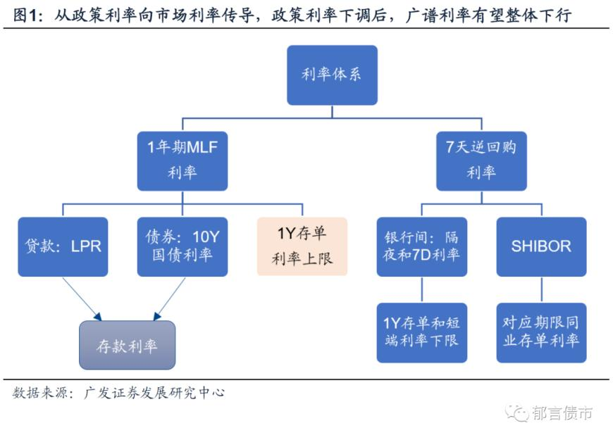 光大银行金融市场部宏观研究员周茂华分析,LPR利率=MLF利率+加点,MLF降息引导市场利率进一步下行,为银行调整存款和贷款利率拓展空间。广发固收分析,在政策利率下调带动下,存贷款利率、银行间资金利率以及债券收益率等有望整体下行。