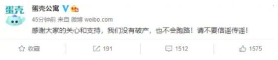 尽管11月16日蛋壳公寓官方微博发布“我们没有破产,也不会跑路”。