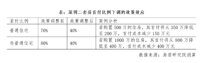同时,根据易居研究院测算,随着二套房首付比例的下调,购房者若购置500万的住房,其首付将从350万降低至200万,首付成本减少150万元。