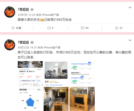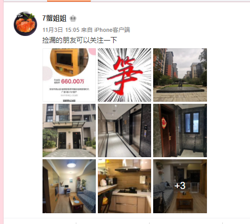 对此,记者尝试联系“7蟹姐姐”,但截至发稿还没得到回复,但在“7蟹姐姐”的微博上,已经看到相关房子的一些信息。