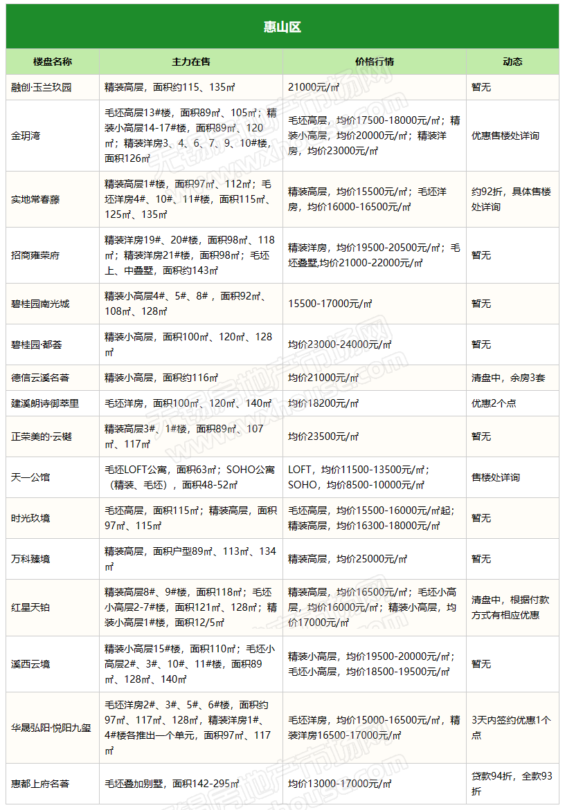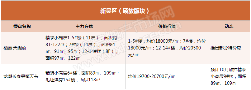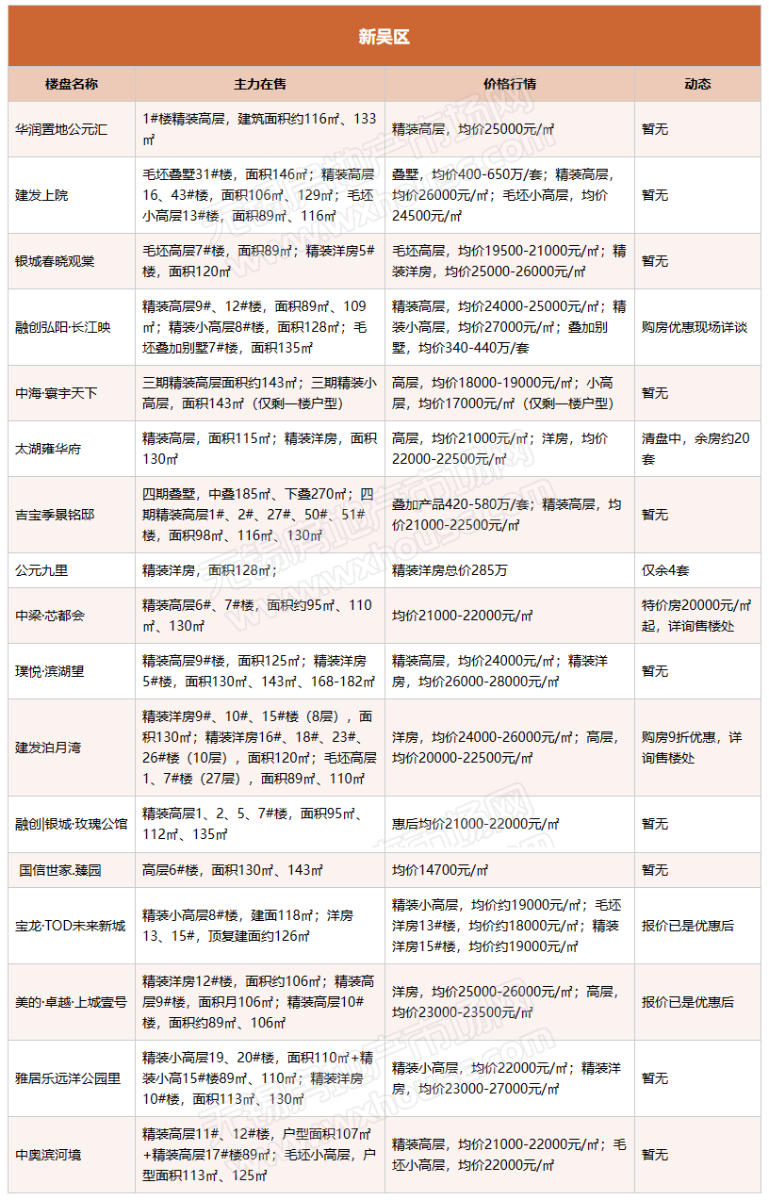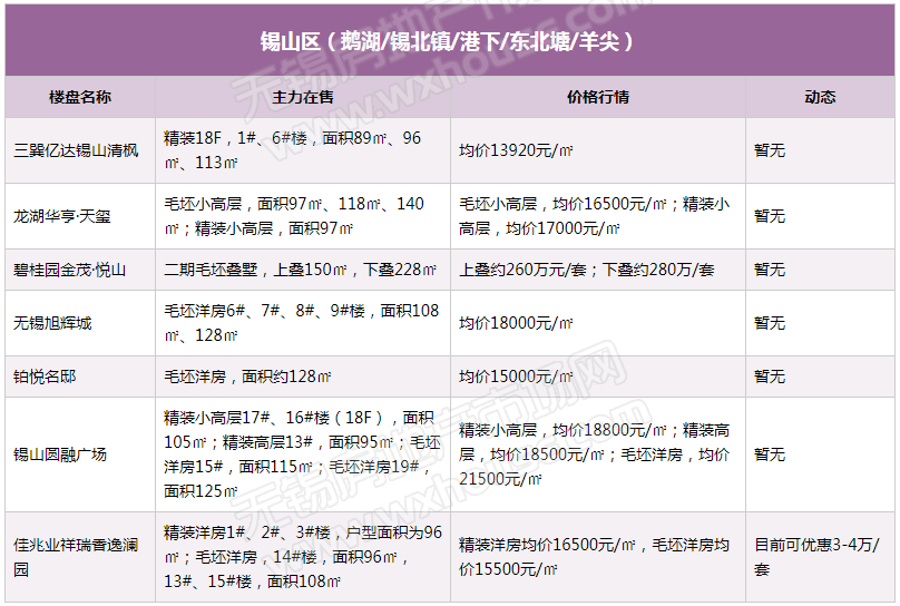 9月的“备案潮”并未如期而至,“金九”明显成色不足,为了促进成交不少开发商们开始通过特价房、打折等方式吸引客户,据悉,目前玖珑悦、金领蠡洲台、栖霞天樾府、新力翡翠湾等项目均有特惠房源在售。10月楼市能否“翻身”?值得关注。(注:下表整理内容为锡城主流楼盘、主流物业,均为售楼处报价)