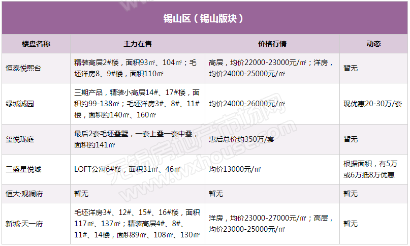 10月锡城主流在售楼盘最新报价及最全在售信息