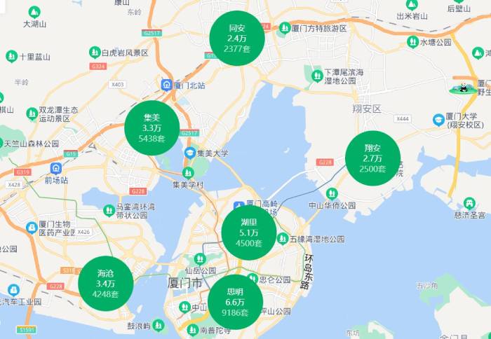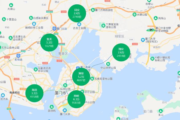 分区域来看,厦门市分为6个辖区。其中,岛内为思明区、湖里区,岛外为集美区、海沧区、同安区、翔安区。