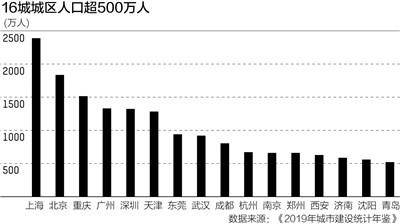 根据《2019年城市建设统计年鉴》,目前有30个城市城区人口超过300万人,其中超过1000万的超大城市有6个;位于500万到1000万的特大城市增至10个,济南晋升为特大城市;此外,位于300万到500万之间的I型大城市有14个。