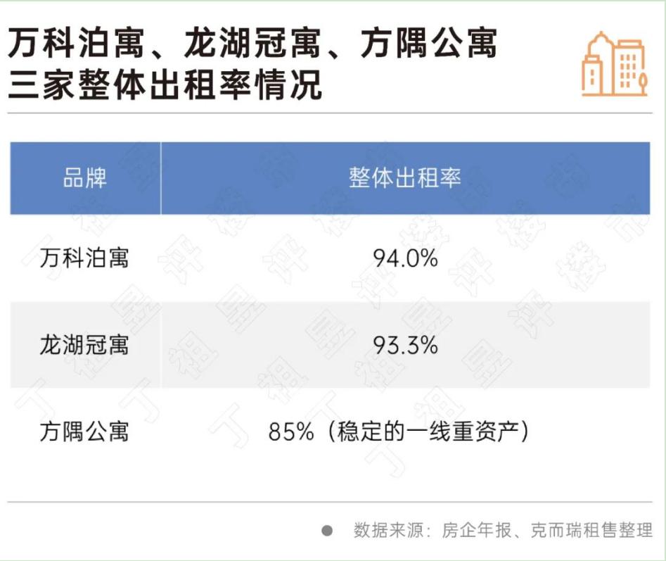 根据各家房企半年报披露的相关数据,泊寓的出租率为94.0%,续租率为56%,龙湖冠寓整体出租率达93.3%,其中开业超过六个月的项目出租率为95.4%,方隅公寓稳定运营的一线重资产项目平均出租率超85%,企业整体的运营效益均保持稳定,并未受疫情影响出现大幅下跌。