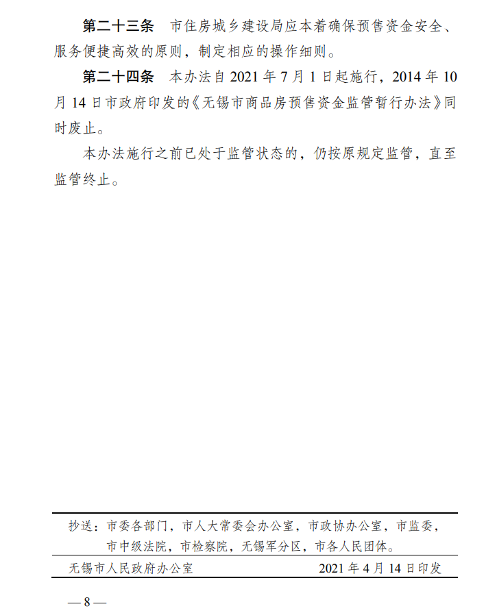 市场网首页 > 新闻中心 > 独家 > 正文 市政府关于印发无锡市商品房预售资金监管办法的通知 2021-04-16 15:54:05 无锡市住建局 本文为无锡房地产市场网原创,谢绝各类形式的转载、刊登。未经许可,私自转载者,本站将追究其相关法律责任。 (责任编辑:张一男)