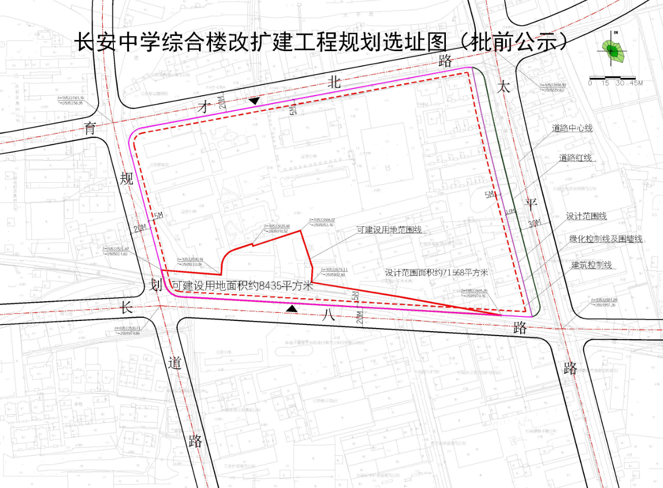 该项目位于惠山经开区太平路与长八路交叉口西北侧,东至用地范围线、南至长八路、西至规划道路、北至用地范围线。建设单位为无锡市长安中学,可建设用地面积约为8435平方米。拟建项目规划用地性质为中小学用地