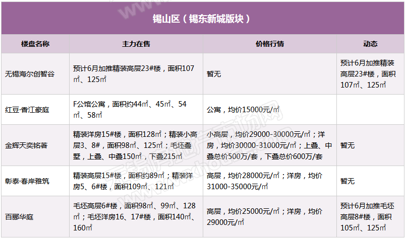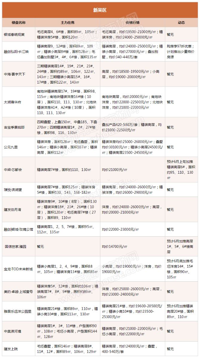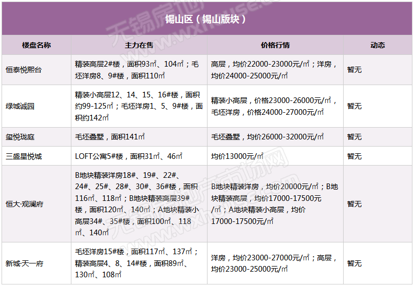 6月锡城主流在售楼盘最新报价及最全在售信息