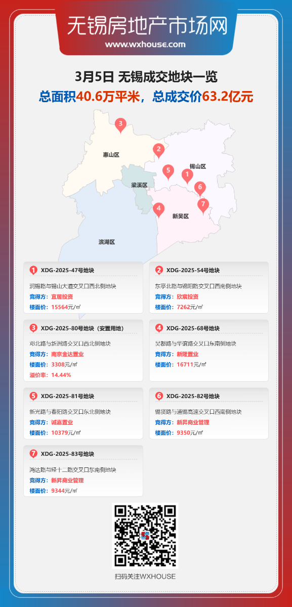 3月5日,无锡2026年土地市场首场土拍顺利落锤。
