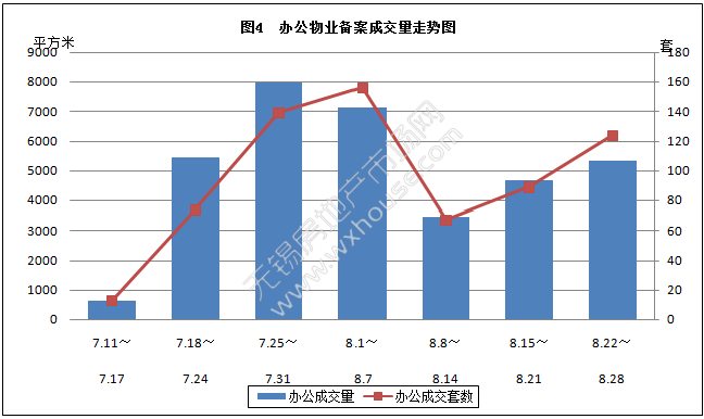 本周办公物业备案成交量和套数分析