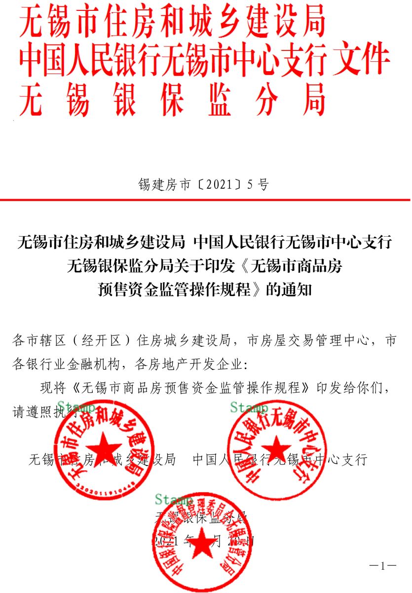 刚刚,新版商品房预售资金监管制度的执行细则《无锡市商品房预售资金监管办法操作规程》出炉。