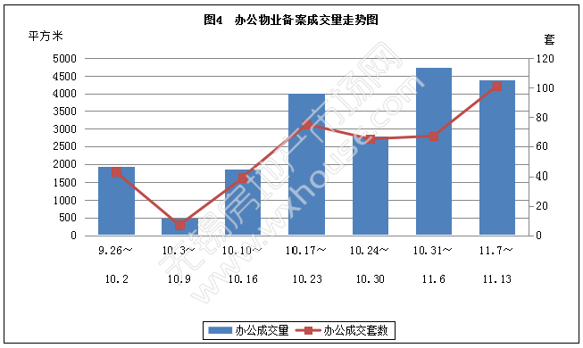 本周办公物业备案成交量和套数分析