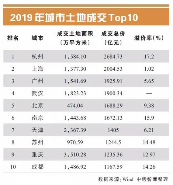 从各城市成交数据看,杭州、上海、广州、武汉、北京、南京、天津、苏州、重庆和成都位列前十,成交总价均超过千亿元。其中杭州以2684.73亿元蝉联榜首。在土地成交TOP30榜单上,无一例外都是一二线城市,可见土地成交进一步向一二线城市集中的趋势明显。