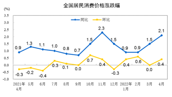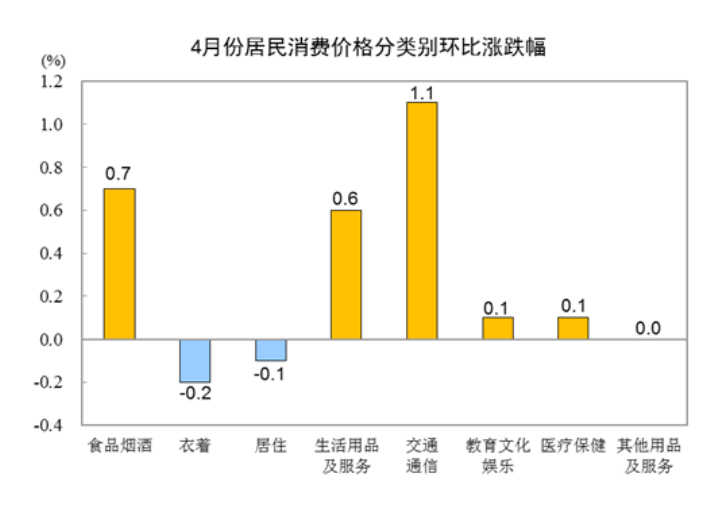 统计局:4月份居民消费价格同比上涨2.1% 环比上涨0.4%