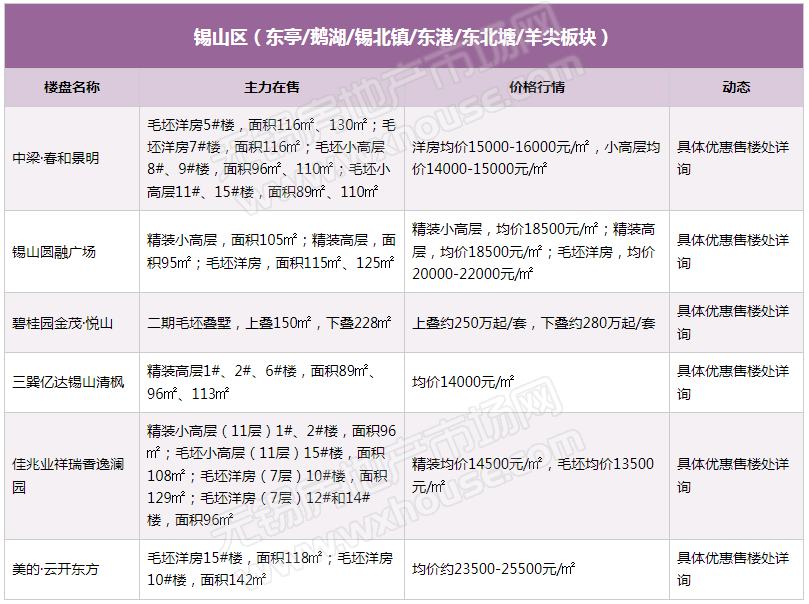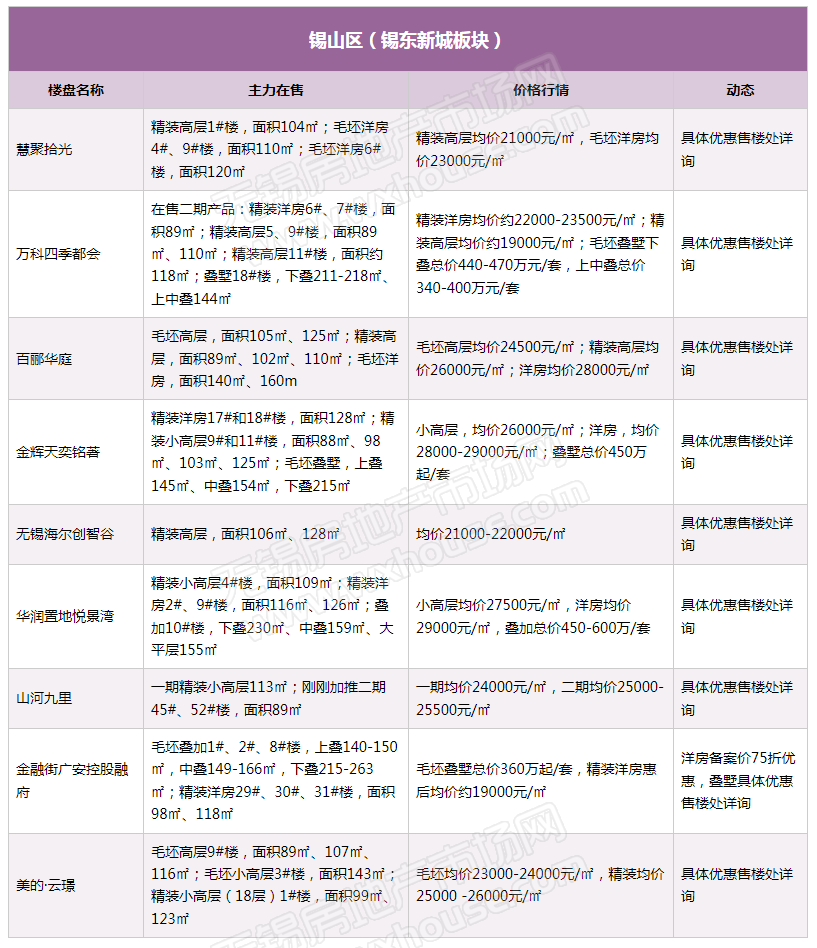 5月锡城主流在售楼盘最新报价及最全在售信息