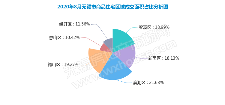 从8月商品住宅的成交情况中可以看出,6区成交量占比均超过10%,成交量最高的滨湖区占比也就20%出头。