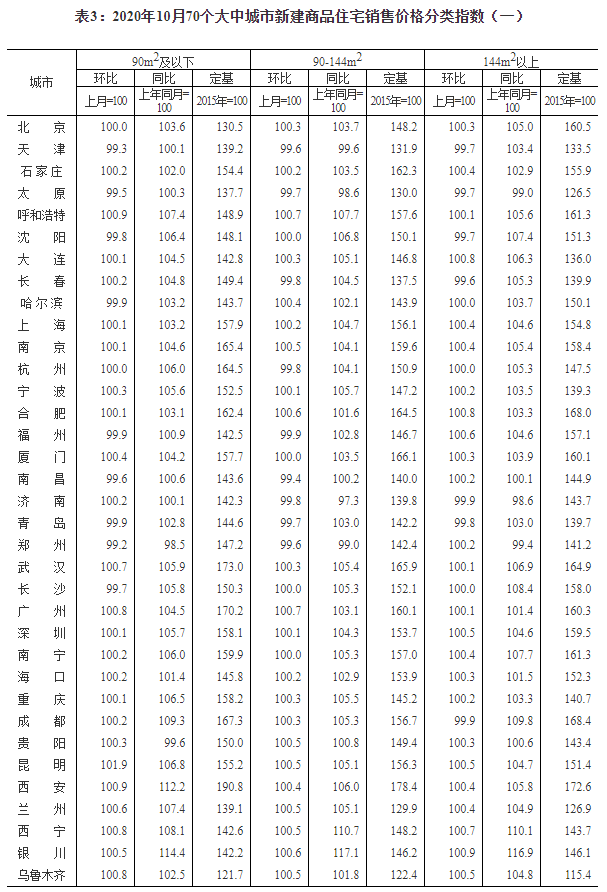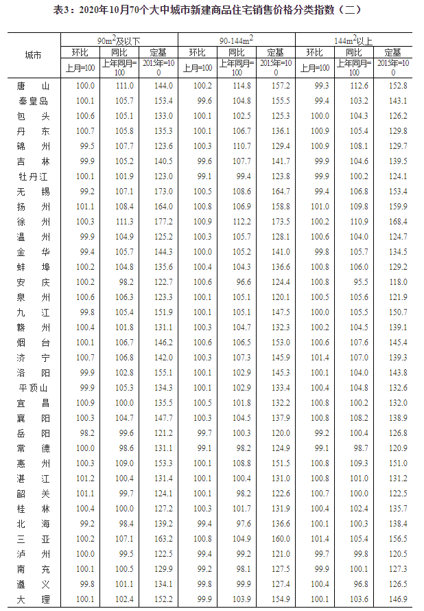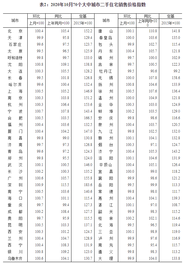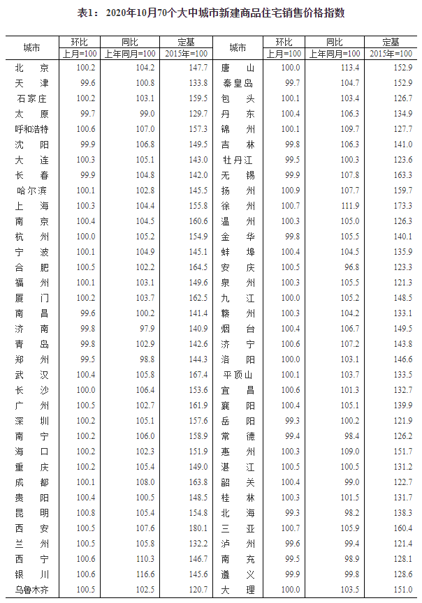 ——国家统计局城市司高级统计师绳国庆解读2020年10月份商品住宅销售价格变动情况统计数据