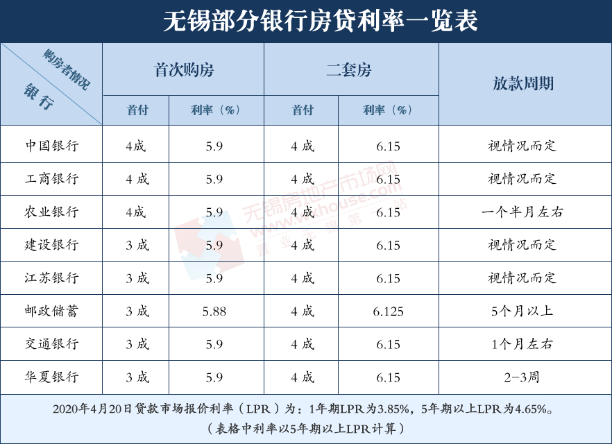 鉴于当前新发放贷款已主要转向以LPR为参考基础定价,新一期贷款市场报价利率(LPR)发布后,小编便致电锡城8家主流银行对锡城个人住房贷款进行摸底。从小编致电的8家银行反馈情况来看,目前无锡住房个贷仍然稳定,与上一期执行标准几乎无变化:针对首次购房,除了邮政储蓄利率按照5.88%执行,其余7家银行,其利率均按照5.9%执行;针对二套房,大部分银行其利率按照6.15%执行(利率以5年期以上LPR计算)。