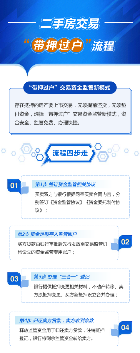 市区二手房交易资金监管官方服务平台早在2018年就正式启动,已为近12万起二手房交易提供了免费资金监管服务。此次,为支持“带押过户”模式顺利实施,市住房城乡建设局对二手房资金监管业务进行了全流程再造,在保证交易安全的前提下,实现买卖双方将还款解押环节置于交易登记环节之后,使交易过程更畅通。
