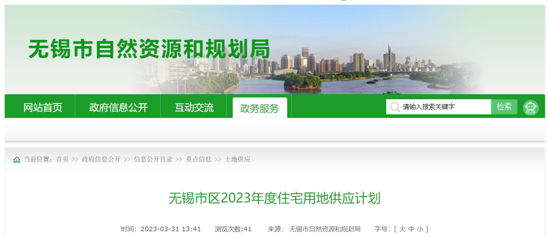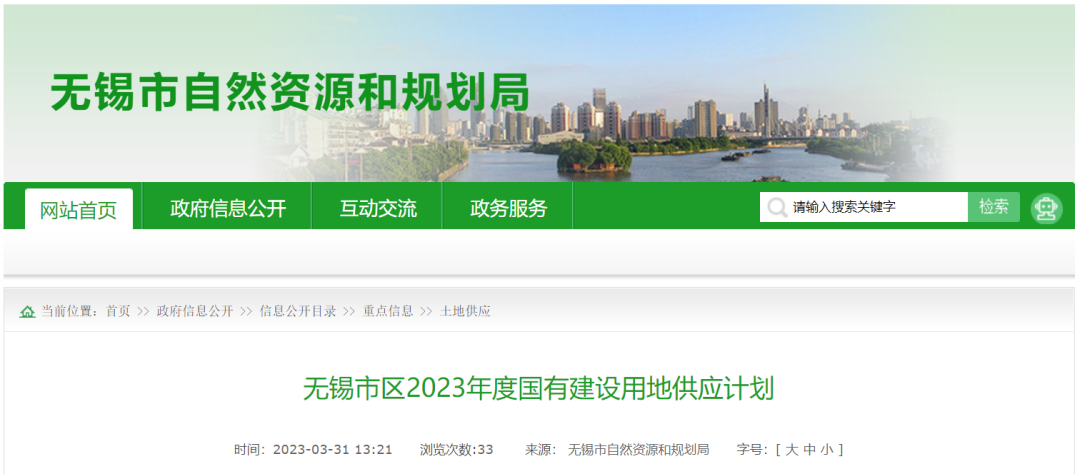 3月31日,无锡市自然资源和规划局网站公布了无锡市区2023年度国有建设用地供应计划,以及无锡市区2023年度住宅用地供应计划。