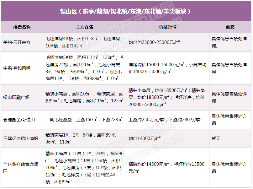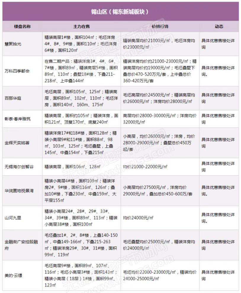 3月锡城主流在售楼盘最新报价及最全在售信息