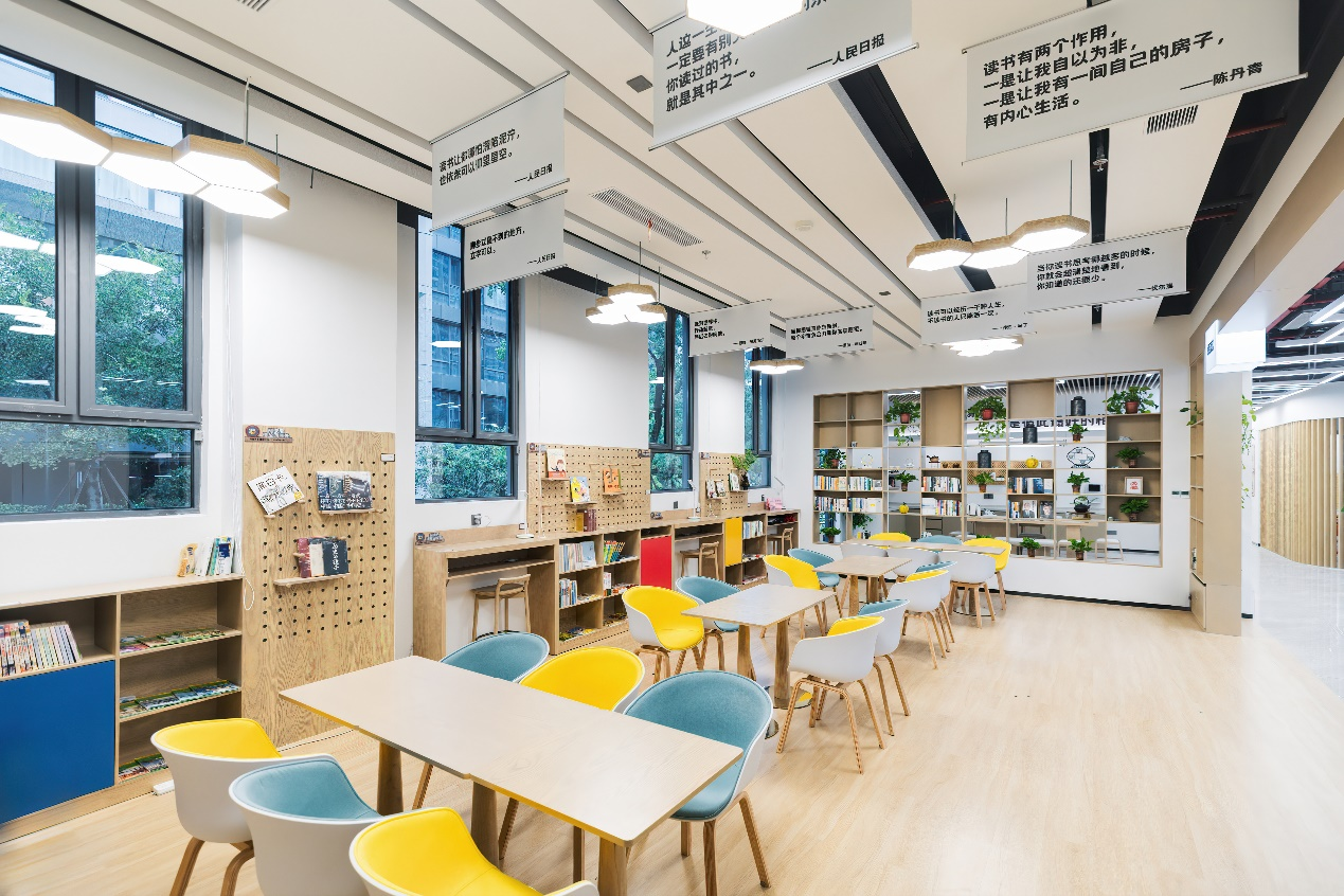 阅读空间最适合想静一静的时候,午后阳光洒在书桌上,翻几页书,旁边水吧还能接杯热饮,不管是大人想歇会儿,还是孩子周末来读本课外书,都舒服得很。