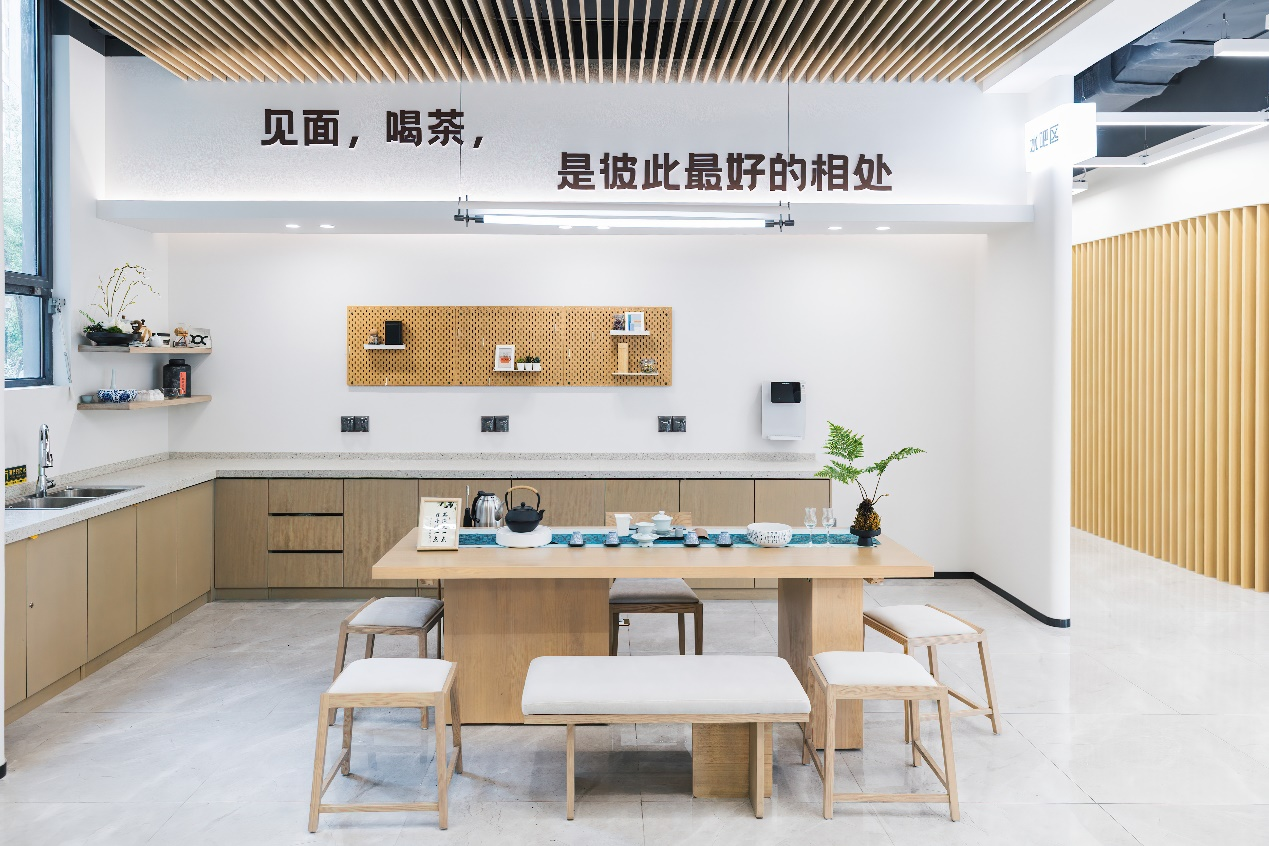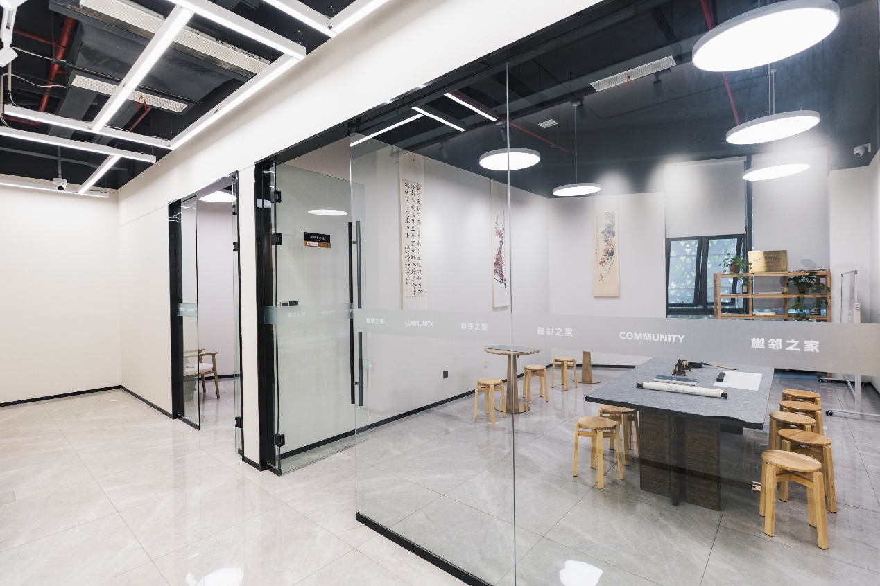 樾邻之家也为茶艺社群准备了“茶文化空间”——多彩生活服务中心,大家可以于此享受安静泡茶的过程,遁入纯粹的精神空间,专注于眼前,茶水流动,薄雾氤氲,此外无物。社区也提供了很完善的场地和服务支持,在专属的茶文化空间里,备好应季茶点,沏上一壶好茶,与三五邻友畅谈,是生活大美。