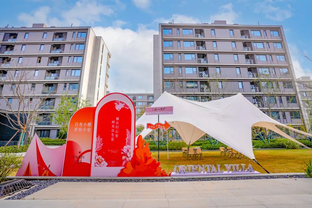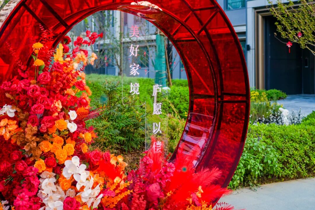 交付从不是冰冷的流程,而是一场跨越时光的久别重逢。溪山云庐以最诚挚的姿态,铺就归家的每一步仪式:从入口处的雅致小景、水树映红,到景观区的祝福高悬、花簇点缀、露营布景,放眼望去满目皆是热烈温馨的红,归家喜乐氛围漫染全场,复古互动合影区,更弥漫着奔赴新家的欢欣。