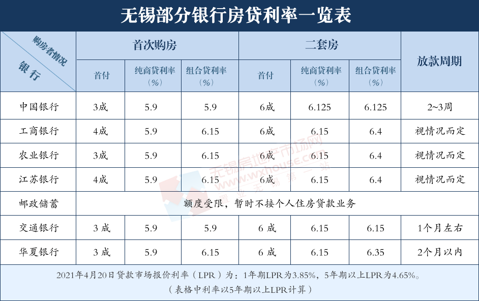 新一期贷款市场报价利率(LPR)公布,小编及时跟进了无锡主流银行个贷首付要求和利率情况。与LPR情况类似,锡城个贷情况近期并未发生太大变化。放款周期相比之前进一步宽松,这对近期有个贷需求的客户来说,不失为一个好消息!不过据业内人士透露,央行对于个贷的审查仍十分严格,后期放款周期或出现延长情况。