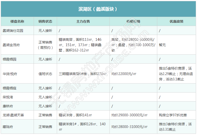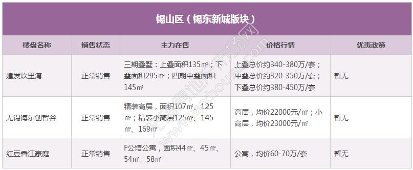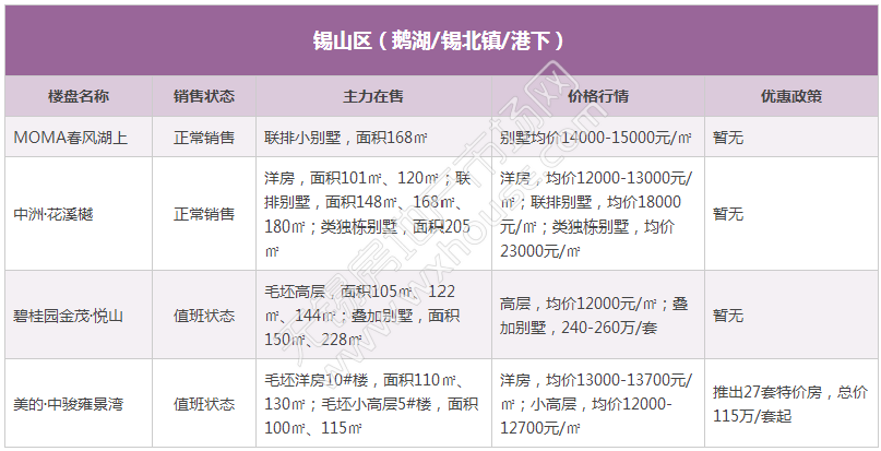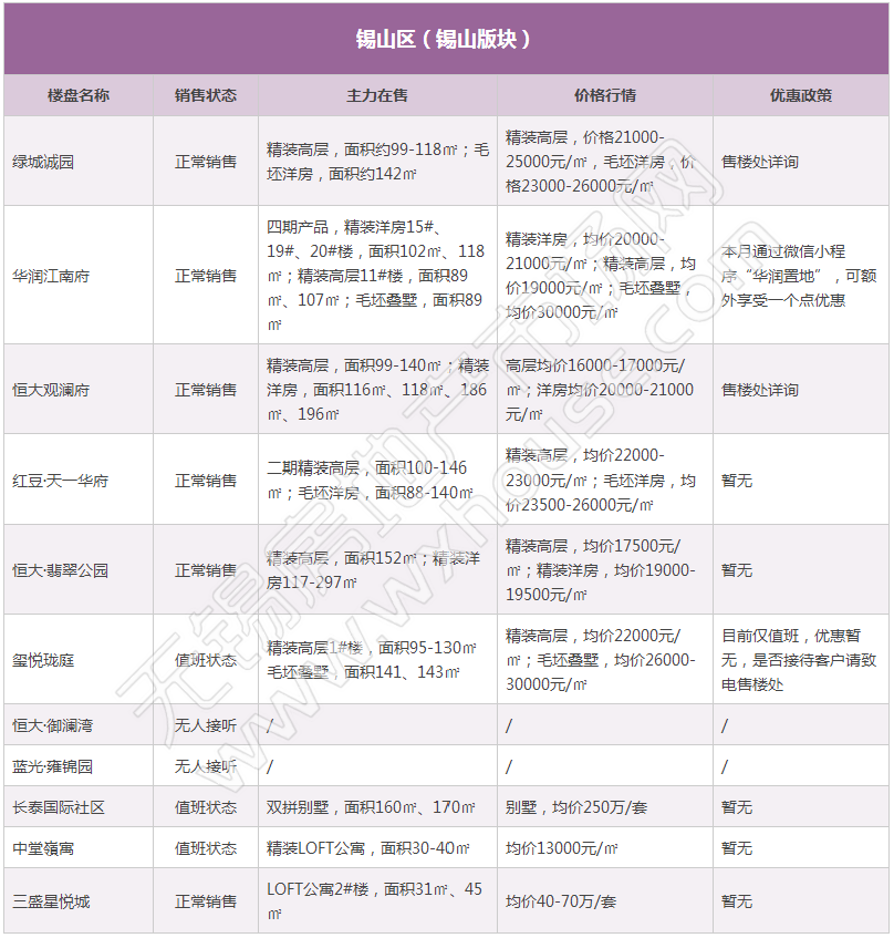 2月锡城主流在售楼盘最新报价及最全在售信息