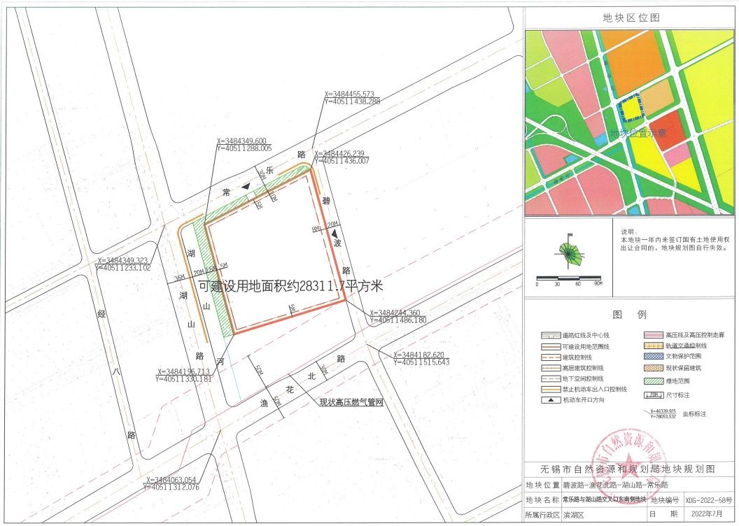 XDG-2022-58号地块,位于滨湖区常乐路与湖山路交叉口东南侧,总可建设用地面积28311.7㎡,居住用地,容积率>1.0,且≤1.6,土地出让金出让起始总价36239万元,起始楼面价8000元/㎡,最高限价41674万元。