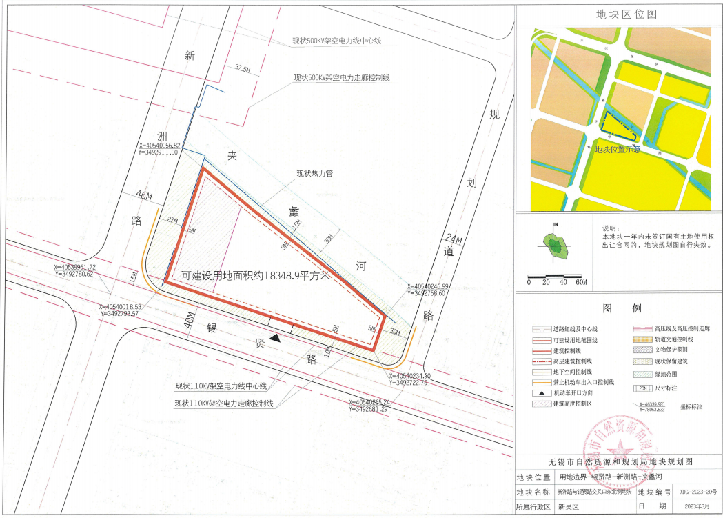 XDG-2023-20号地块,位于新吴区新洲路与锡贤路交叉口东北侧,总可建设用地面积18348.9㎡,居住用地,容积率>1.0,且≤1.9,土地出让金出让起始总价35561万元,起始楼面价10200 元/㎡,最高限价40895万元。