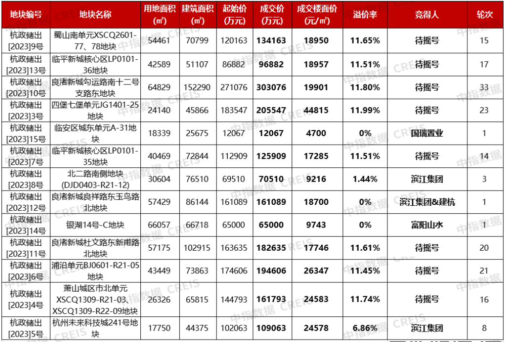 杭州今年首批集中供地出让情况 来源:中指研究院整理