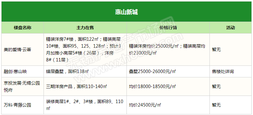 惠山新城主力在售楼盘一览